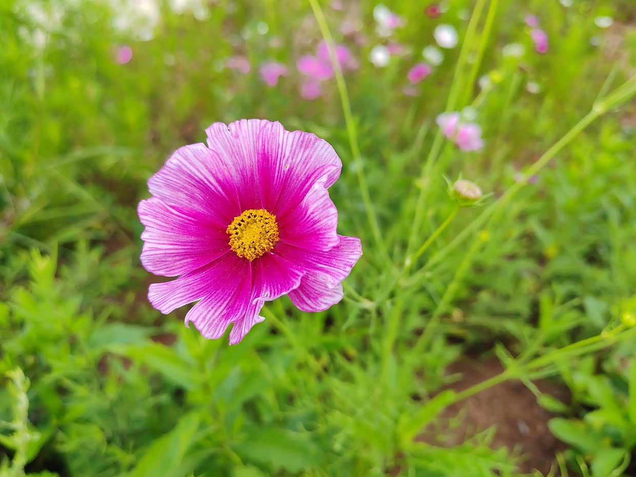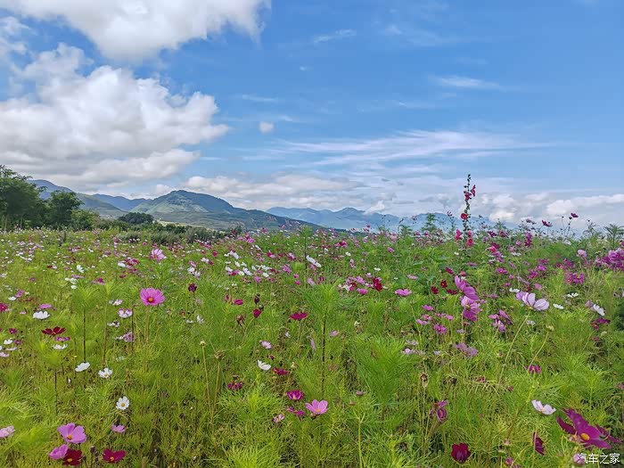 离开观景平台,前行不久,路旁现出大片格桑花,