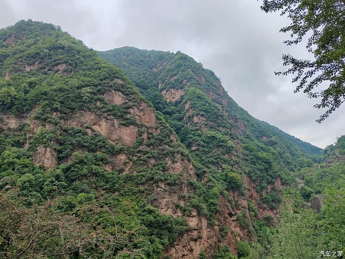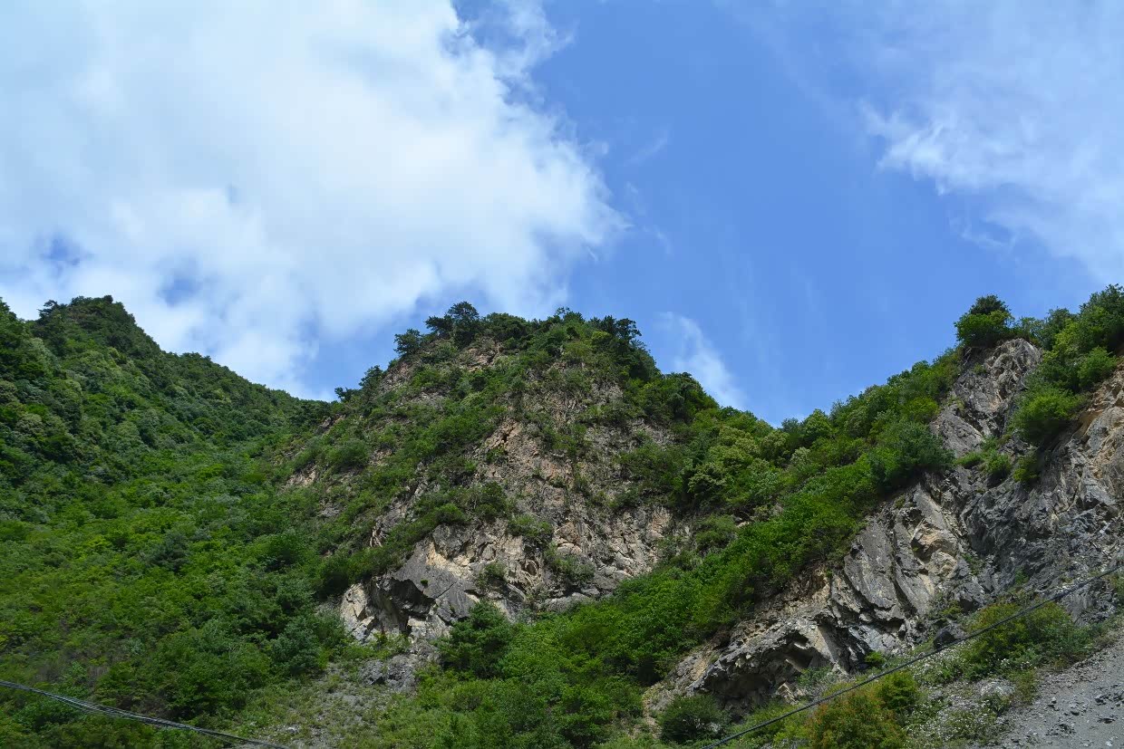 渐向南行,一些险峻崖壁逐渐出现,壁上也生得葱茏绿树,不禁让人感叹生命力之顽强。