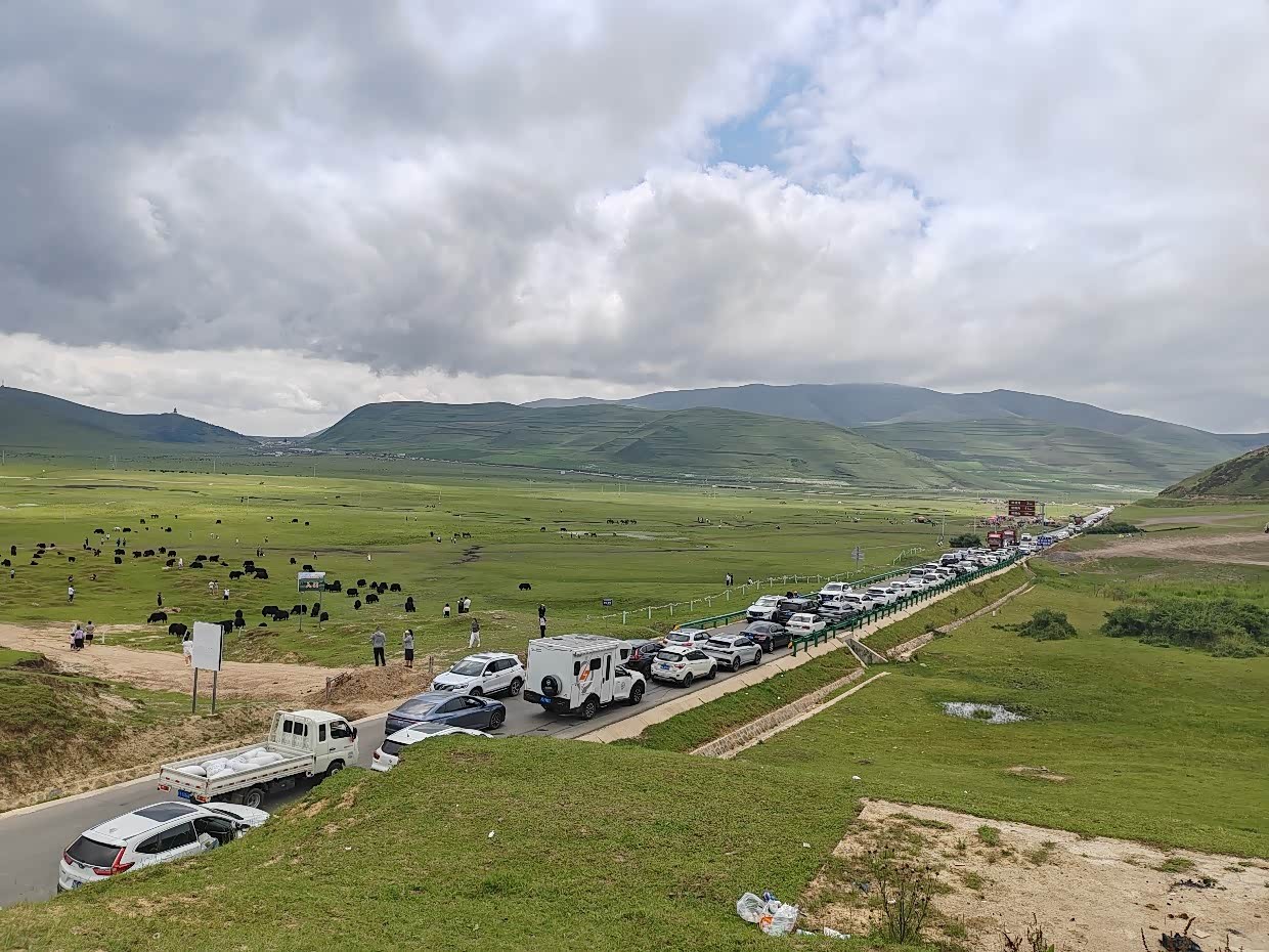 在如此辽阔的草原上,竟然发生了堵车,想来,也真是颇感滑稽了……