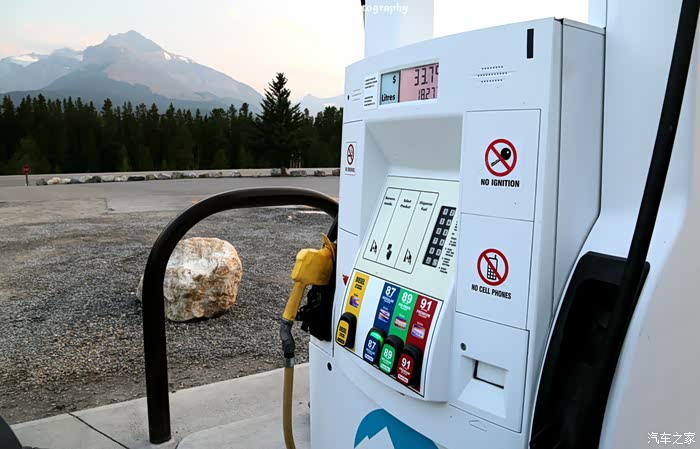 这里的油价比卡尔加里城内贵了至少百分之三十,最普通的87号汽油也需要1.85加币