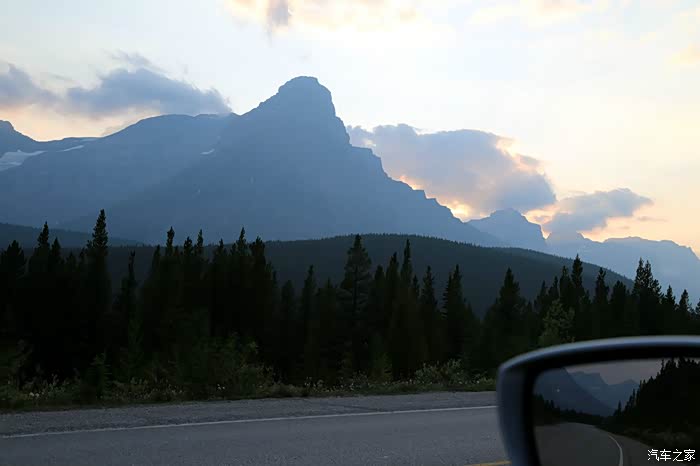 离开佩托湖已是黄昏,我们继续在晚霞中欣赏冰原大道的震撼风景