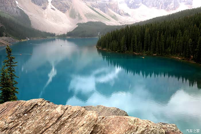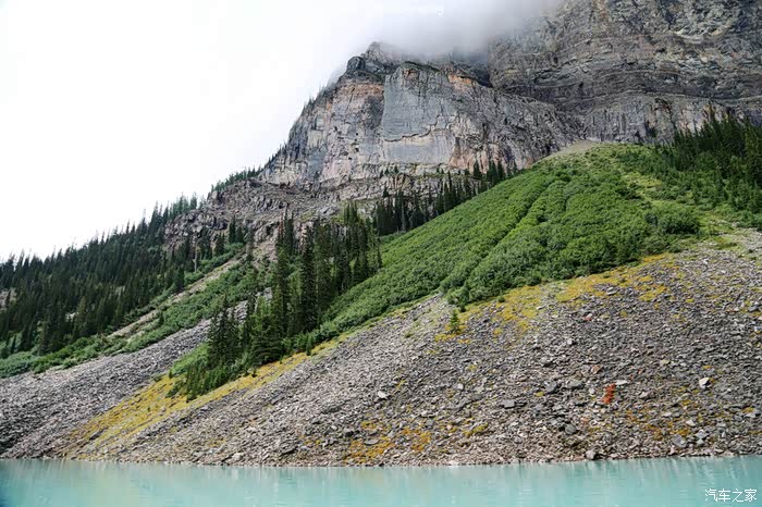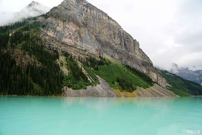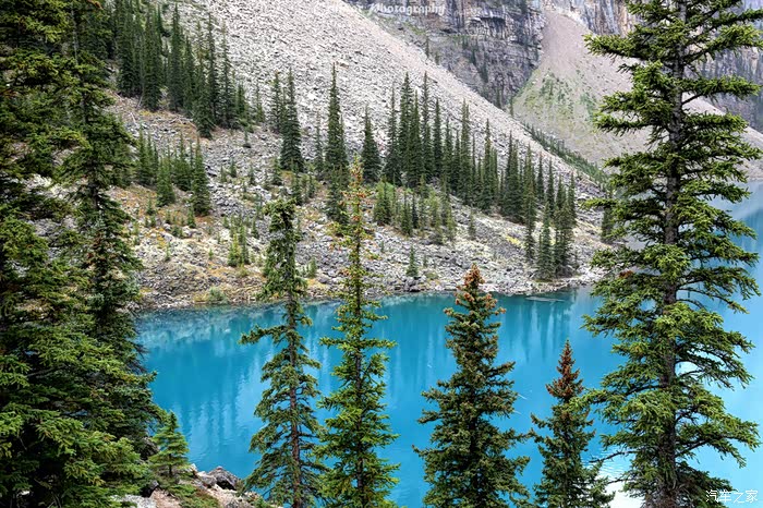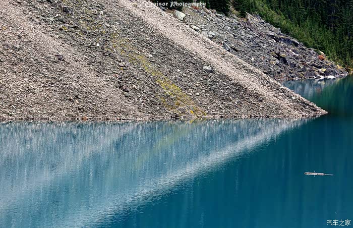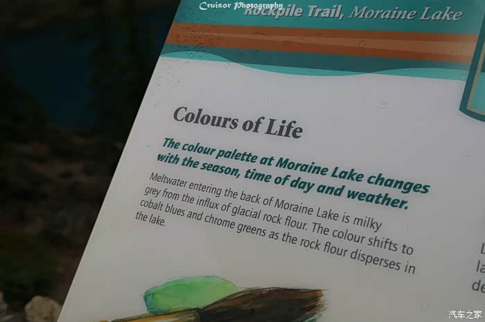 梦莲湖色彩的成因:冰山雪水融入湖中时还是牛奶灰色,但是随着周边岩层粉末的混合,湖水慢慢就变成了钴(Cobalt)蓝色或者铬(Chrome)绿色