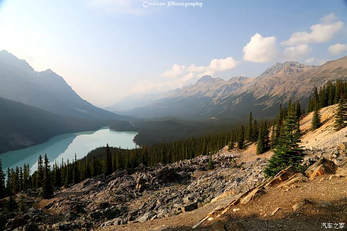 湖水由佩托冰川供给而下,她那携带着重金属微粒的湖水,顷刻转化为峡谷中的一颗蓝色宝石。