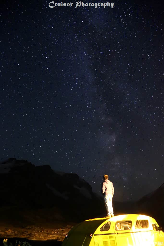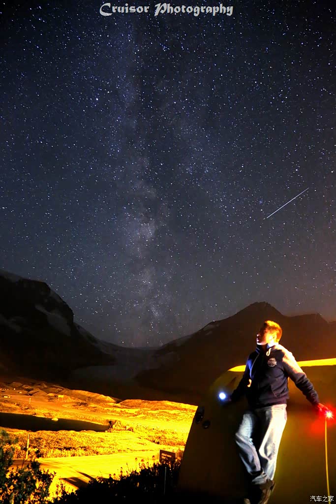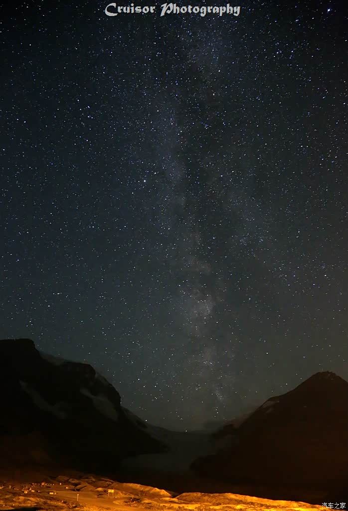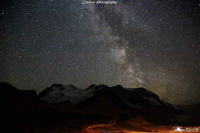 选择这里,除了距离冰原咫尺之遥以外,还因为这里还是著名的暗夜保护区。当天晚上,还未到午夜,银河已经挂在了天空正上方