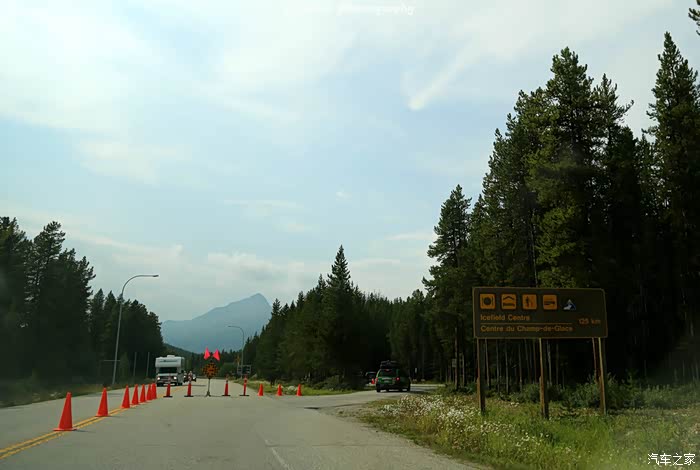 行进一百多公里,前方的引导路障告诉我们这里进入了嘉士伯国家公园 Jasper National Park 的地界