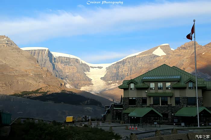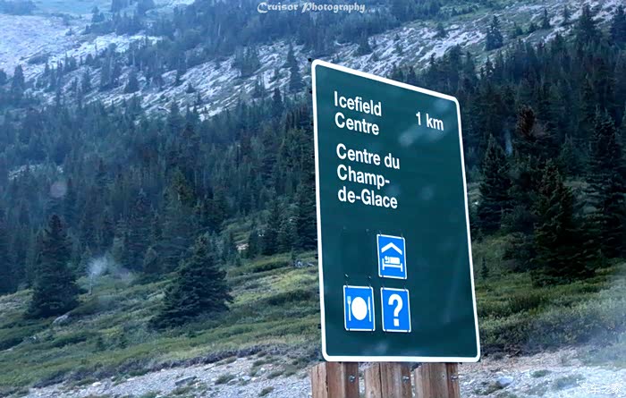 加满油后继续上路,不多久就看到了冰原中心的标志,这是今晚我们的落脚点