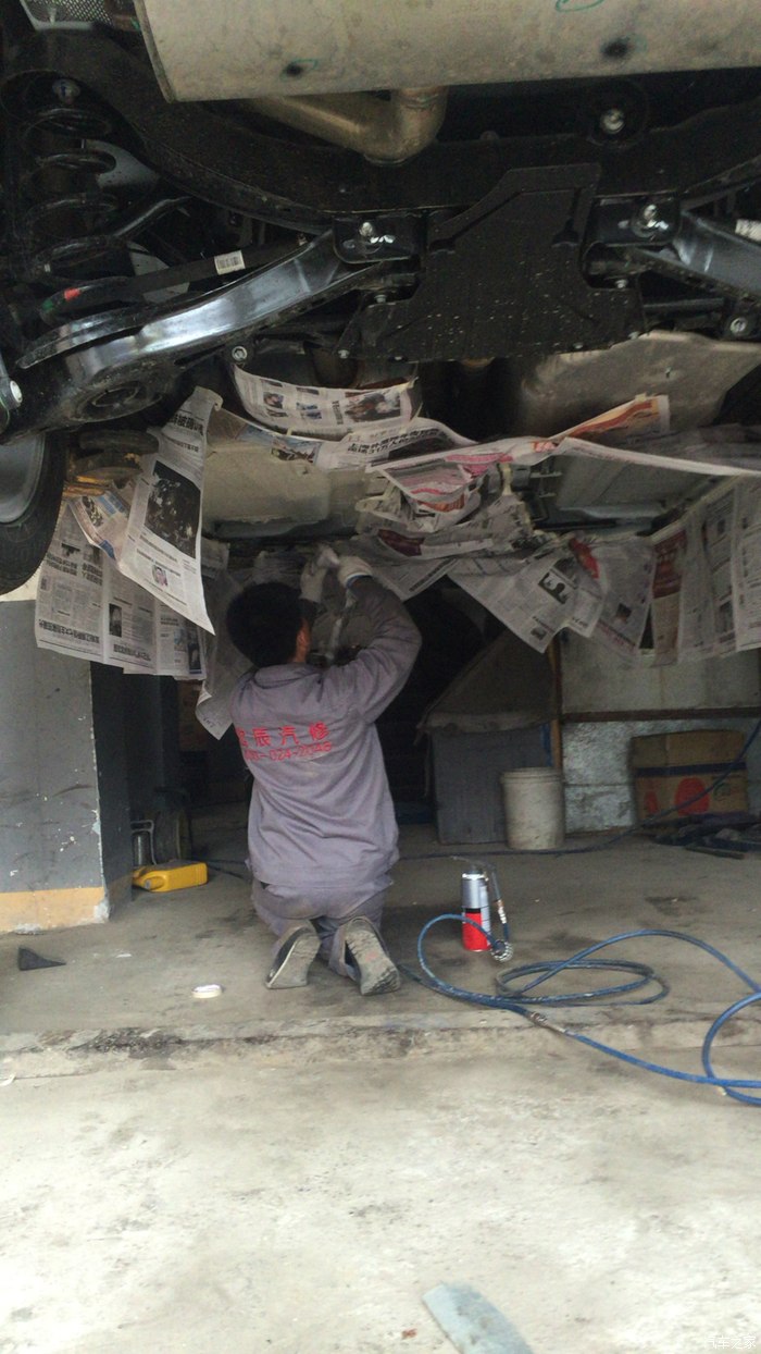 提车后,就帖了个膜,买了个脚垫,别的什么也没加,不过考虑到沈阳冬天雪后会撒大量除雪剂,所以决定还是去喷一下底盘装甲。在车友群里联系了施工的师傅,后来知道还是老乡