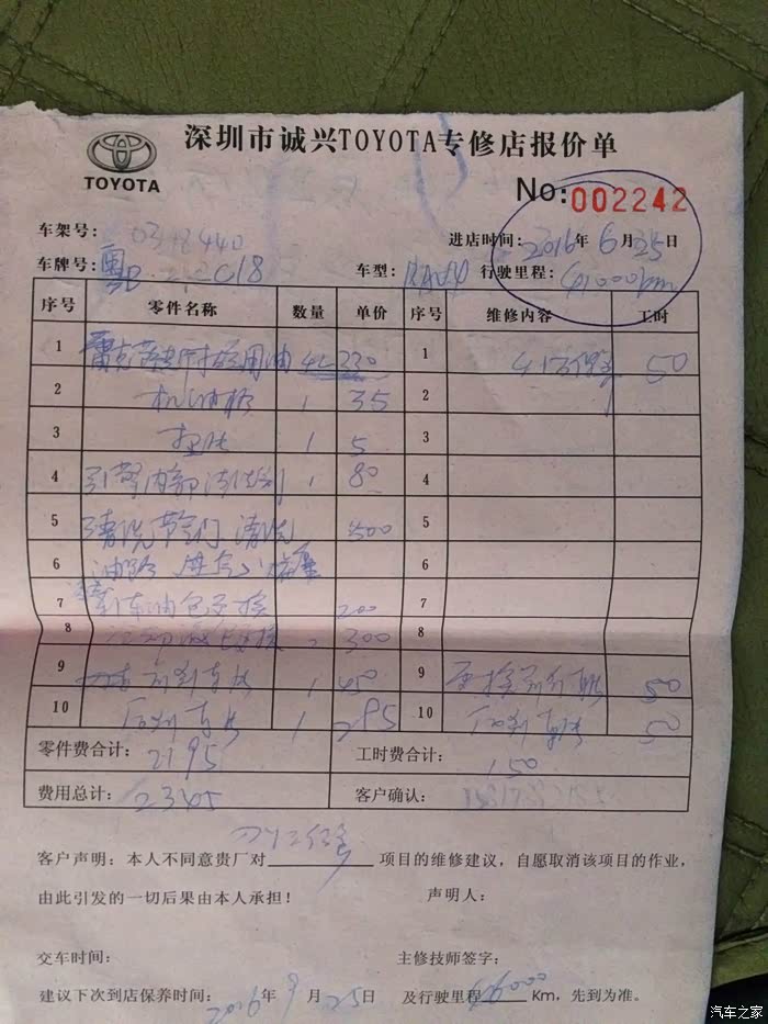 回来,说换车,换台什么车呢?我的原则很简单,钱多的不太在乎或确实需要,上新车BBA的E级或同级以上, 5年后更换,二手的BBA绝不考虑5年以上的;要不,就是二手丰田,为什么不是本田、日产呢?日系车,肯定丰田排首位,然后呢丰田我想3几年的车,只要没有撞、泡水、火烧应该没啥问题。考虑过二手雷克萨斯,想到丰田也一样质量可靠,雷的品牌溢价有些不值,故而转投二手丰田。轿车是不会再要了,包括皇冠,必须SUV。汉兰达也不错,但有些尴尬,不适合我,上不如霸道下不如RAV4,所以,就决定吃了这个螃蟹了。这台车,2013年04月的2.0豪华两驱款,是偷偷去看的,现场1分钟没要,就定了。事实证明,冲动是要吃亏的,一是价钱没砍到位,二是被奸商蒙了,好在车况好,也就释怀了。这事,没少被LD批,说吃错药了吧,换车还换个二手车,还丰田。哎,男人的经典与情怀,岂是女人能明白的,全在书包上啊。下面图片详细介绍一下吧,自己都觉的啰嗉了。