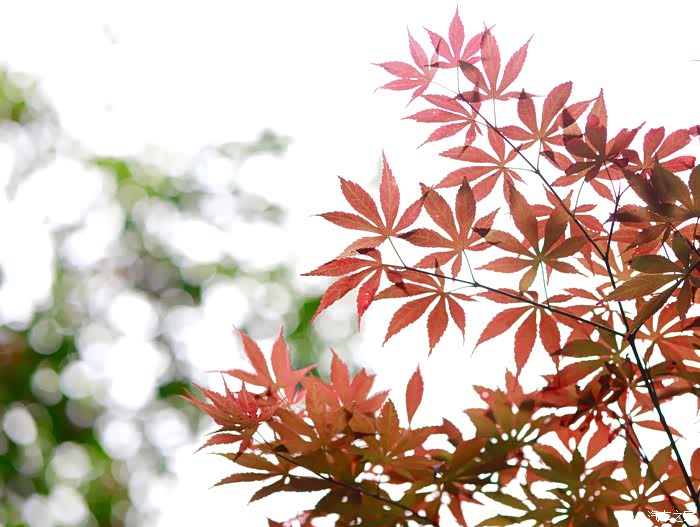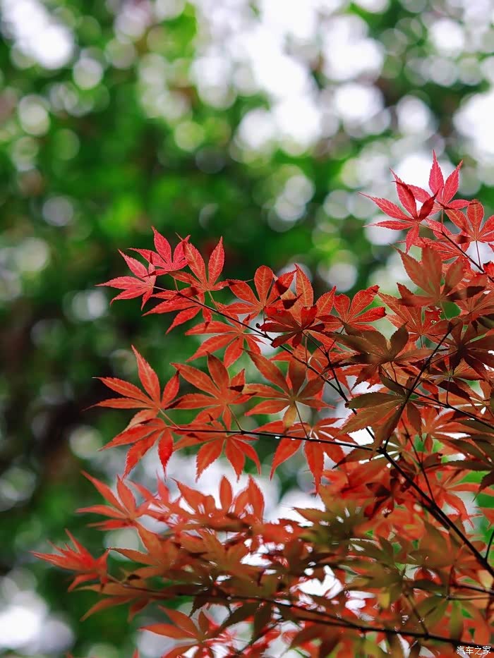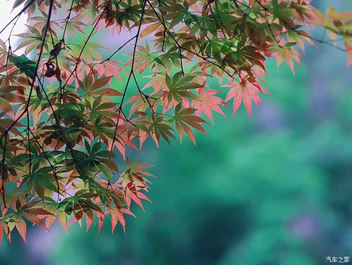 除了瀑布外,还有很多很多红色的枫叶,在一片绿色中极为显眼。