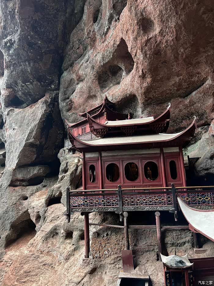 甘露寺:游船停靠在悬空寺码头时,抬头就被嵌在赤壁中的古寺震撼到——悬崖上竟嵌着座没有一片瓦的悬空寺!