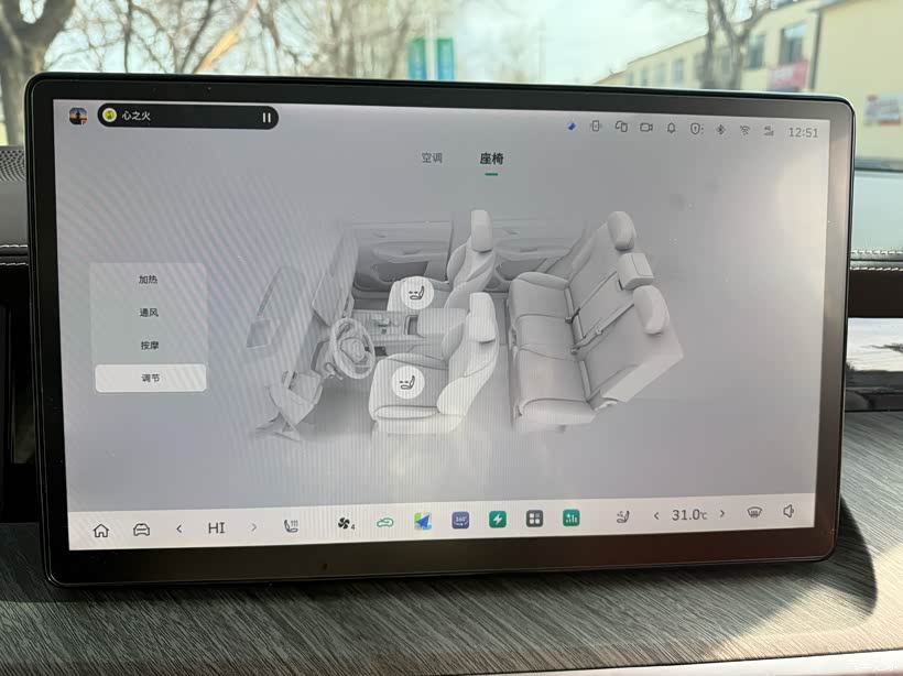 除了空调之外座椅加热功能也得安排。由于我比较怕冷,所以每次加热的档位都会调到最高。三档加热温度打开之后不一会儿座椅就发热了,那种感觉就好像我躺在电褥子上一样,背部和屁股都会感觉到加热感,再吹着空调热风,不夸张的说坐在车内穿短袖都不会感觉到冷。