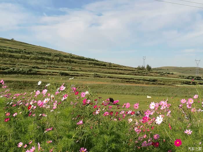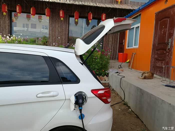 官厅服务区出来后车不是很多,可以跑到110了,一路奔驰,直奔张家口服务区,开入服务区后,发现充电桩虽然建好,但是还没有通电,小小紧张一下,此时续航只有30KM多一点了,怎么办?忽然想起荷兄的帖子里说张家口市内有新光新能源可以充电,于是设置导航,发现幸好距离不远,距离此地大概14KM左右。于是导航去英光新能源,到了后发现这里正在施工,充电可以,但是费点劲,院子里种了不少花草,还有南瓜,景色还不错。设置好充电后,出门右走,到路边吃饭,有个饸饹面馆还不错,小碗5元,大碗6元。一个多小时后,电充满了。设置导航为草原天路野狐岭,出发。