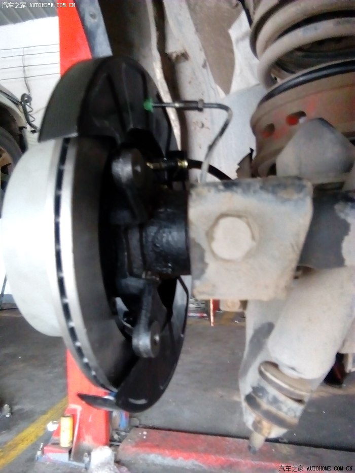 这里需要说明一下,2.4瑞风短轴的车,后轮平衡杆在左后轮的固定处会影响到卡钳链接油管的螺丝,必须要切掉一个2平方厘米的口子才不致于互相影响。同时对平衡轴也没有大的影响。
