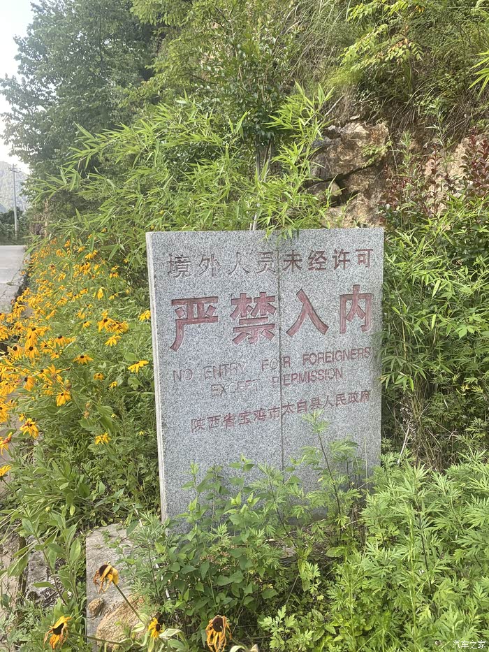 一直骑,就到了太白县,这里路边有牌子,写着“境外人士不得入内”。