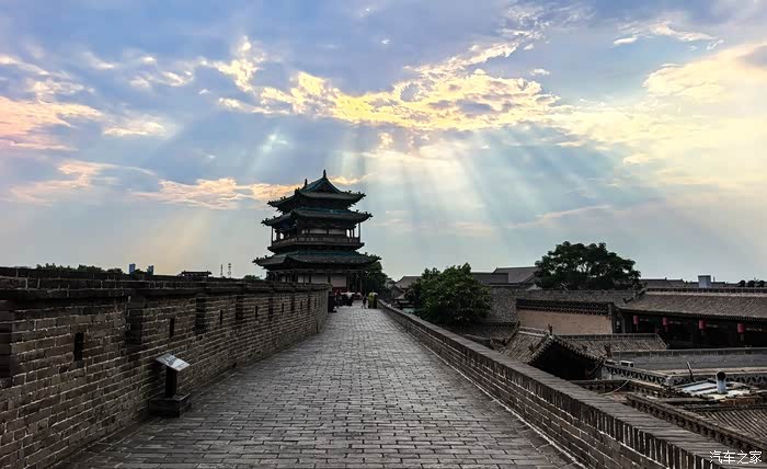 傍晚的平遥古城,市楼
