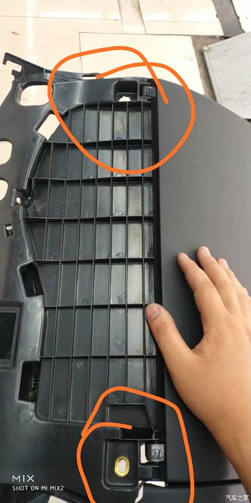首先如果是更换扶手箱我们可以先看看扶手箱的螺丝孔位