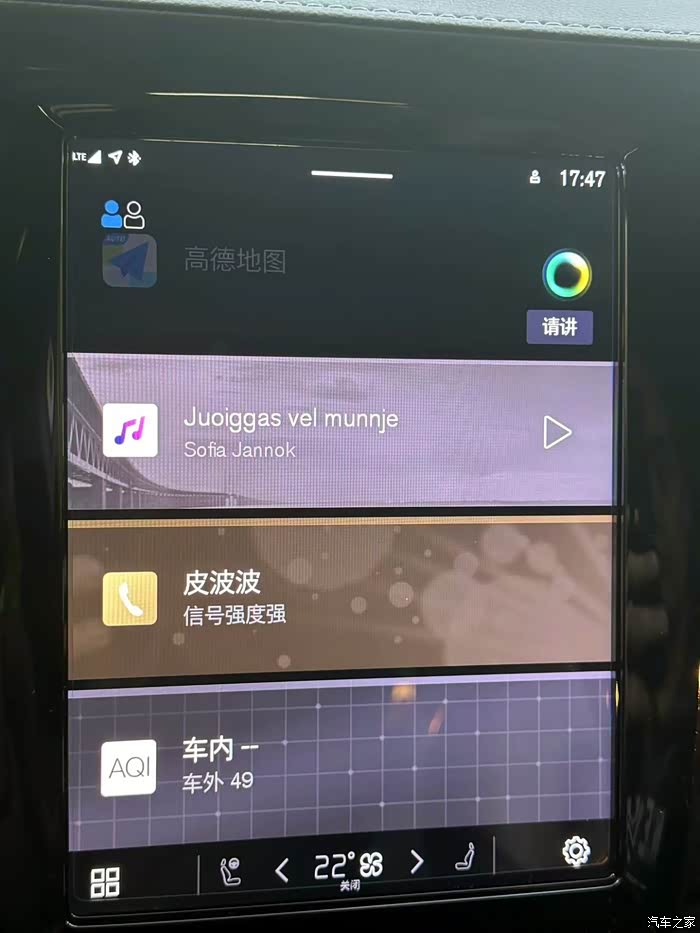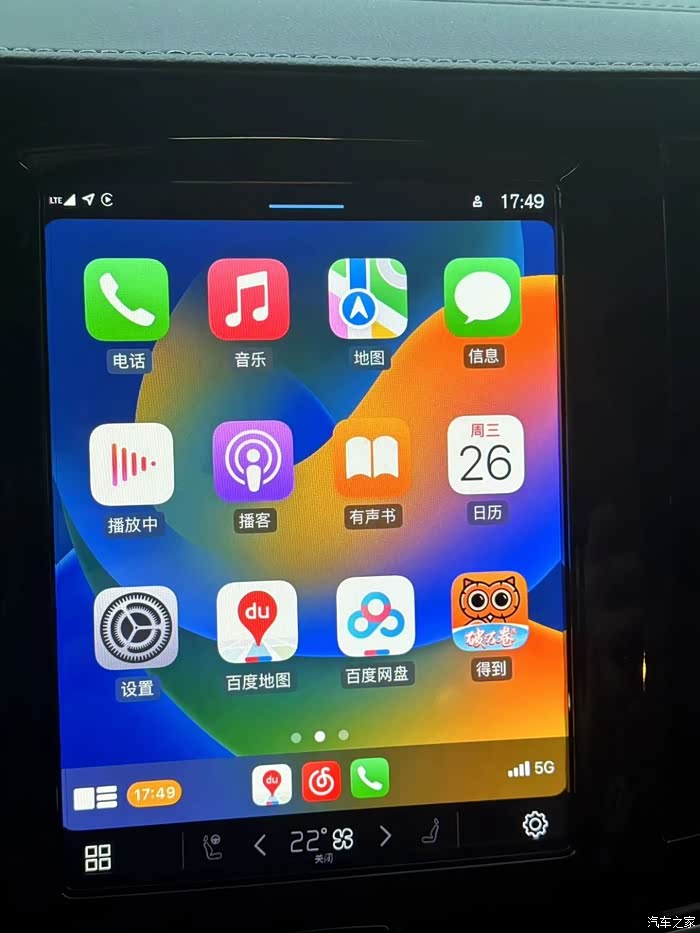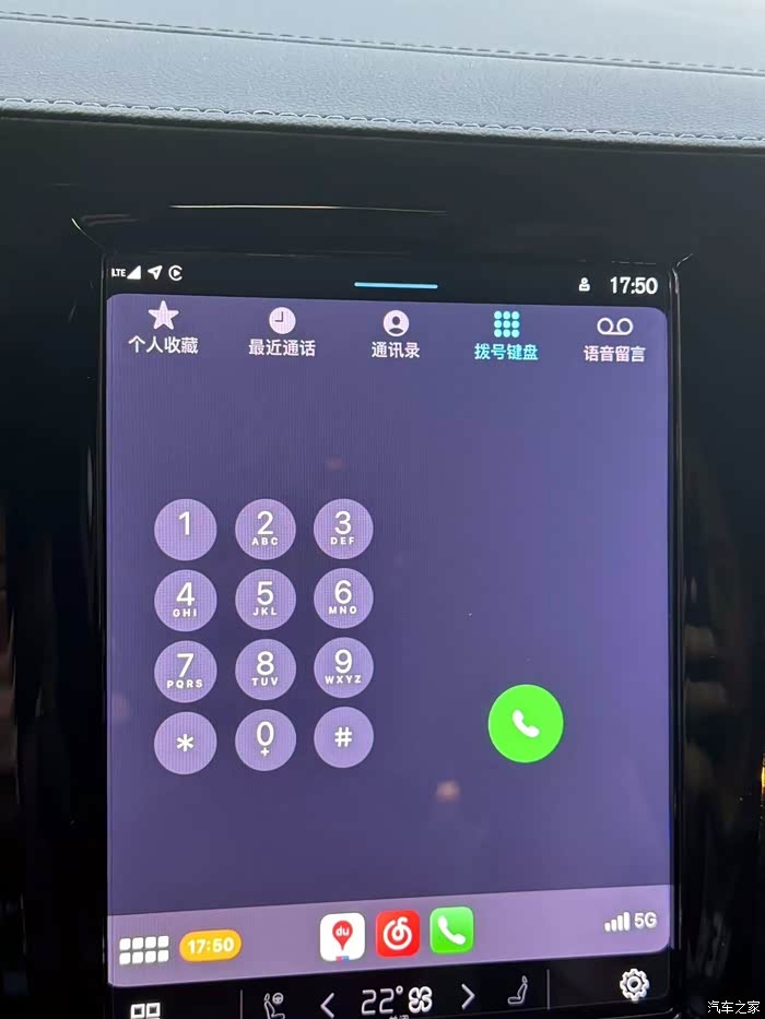 电话功能通过蓝牙绑定,上车后自动连接,手机个人收藏栏也可显示,拨打电话非常方便。carplay通过中央扶手里面的typec接口连线实现。全屏竖屏显示,触摸屏操控便捷。