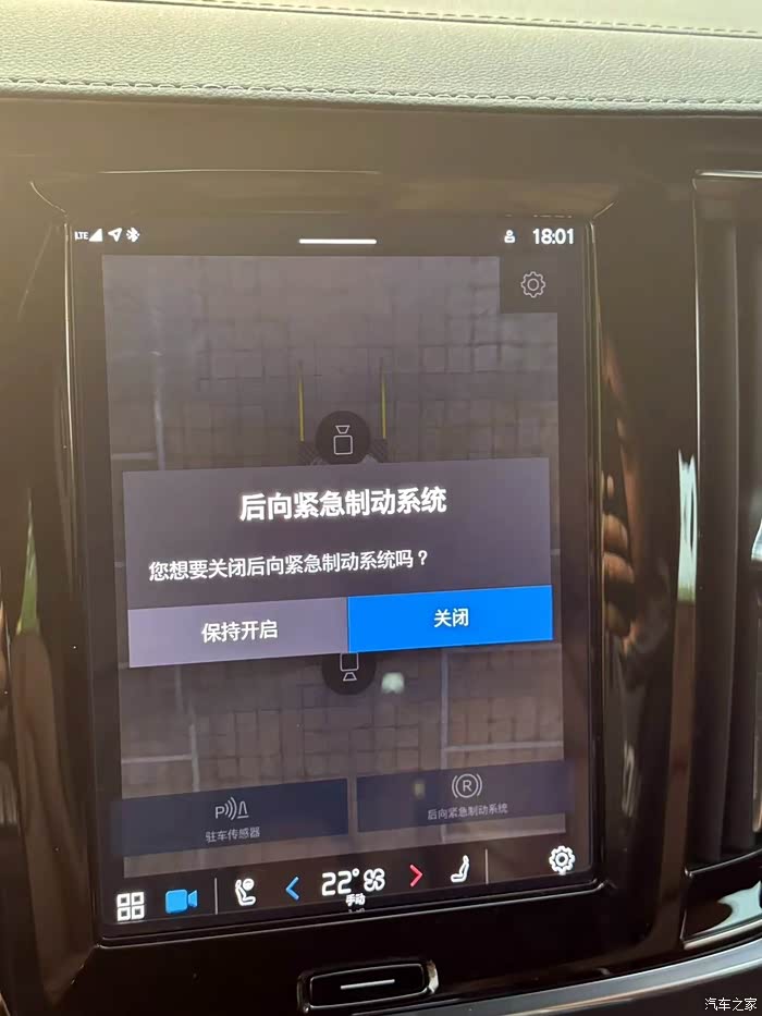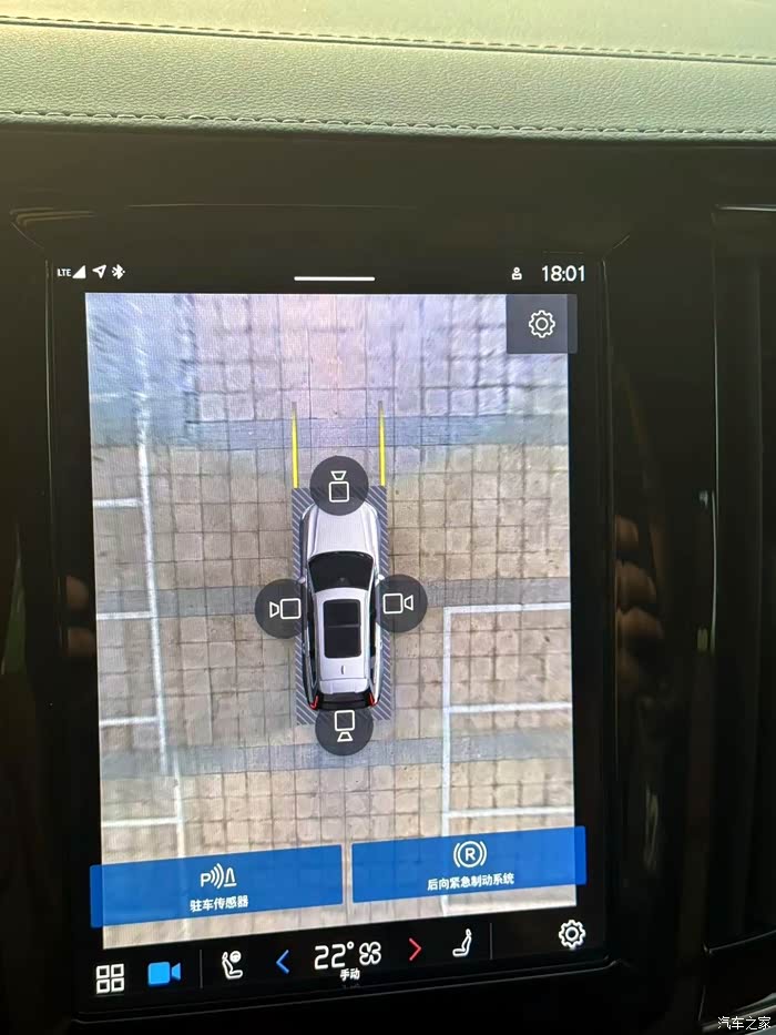 360影像界面,可以点开查看四个方向的细节。倒车时候如果车辆过多,后向紧急制动系统可以点击暂时关闭。