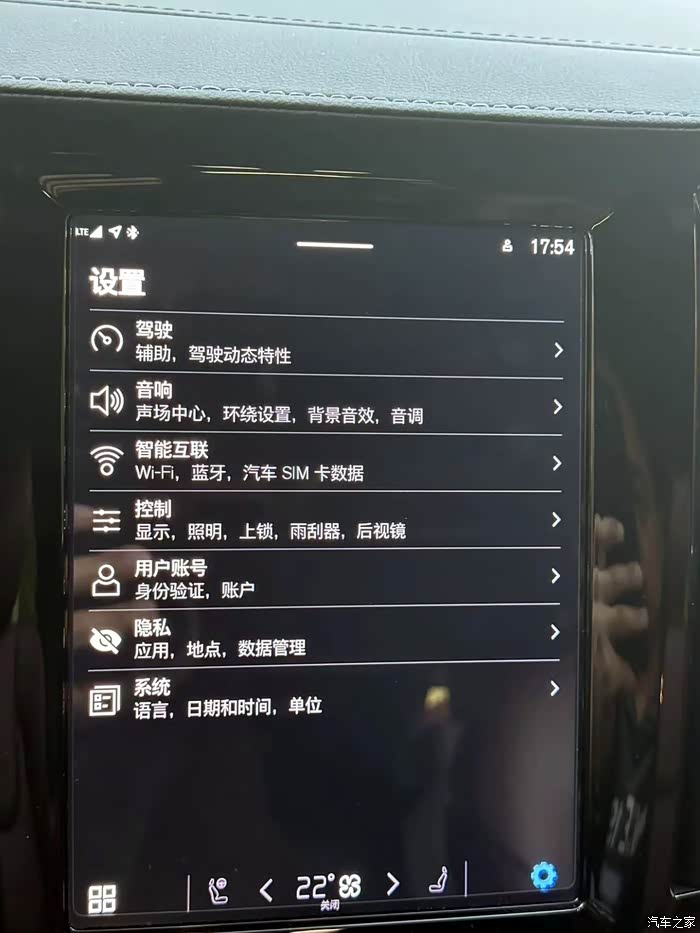 2021款V90CC搭配的是Sensus系统,Sensus系统于2013年发布,功能简洁,易上手,左右切换设置方便。因为系统相对封闭,后期可拓展化较少,所以像导航,半屏carplay,语音控制等功能等稍显落后。