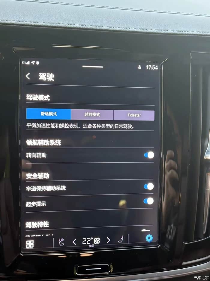 驾驶模式选择中,最下面有一个空气悬挂开关,V90CC是后轮空悬需要注意,需要换胎或者上举升机前,需要手动关闭空气悬挂。Polestar模式我是非常推荐大家去刷的,刷完之后,整个变速箱逻辑会更好,车辆的中段加速更线性(普通模式下也有提升),4C自适应底盘在Polestar模式下,侧倾会减小,悬挂更硬朗。