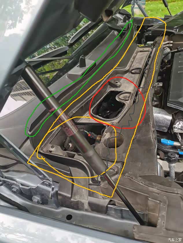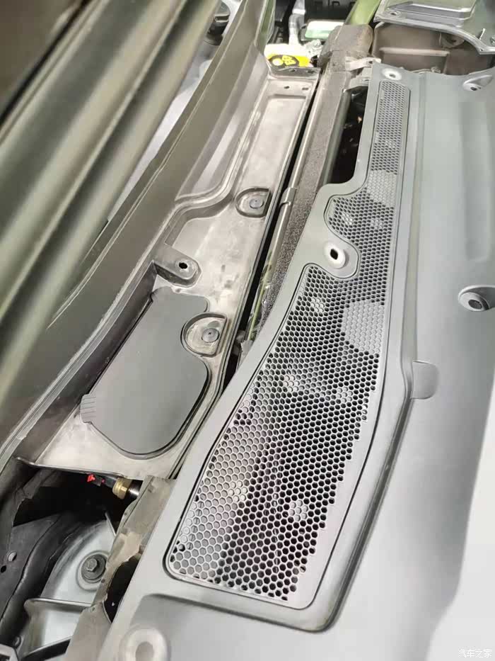 最后,兄弟们都在念叨的问题,这车夏天不开压缩机只开风机,进来的是热风。我多次测试,冷车上路,自然风进来的是冷风,跑一会,机舱热了,就是热风,想凉快必须开压缩机。开始我还以为是进气口设计的网孔小,堵住了,冷风进的少。开拆排水和进气饰板,拆完了才发现,老子站着向远方的阿三设计师默念一句 RNMMP!这车排水盖板只有正对发动机最左侧有一个不到20厘米左右的空间进气,紧挨着有一个可拆卸盖板,貌似是检修用的,平常是盖着的,意思说,这车根本和咱日常见的车空气进风设计完全不同,玻璃边是洗窗水喷头座,这是其他厂家设计进风口的地方,咱们发运那一溜是有一排五六厘米高的隔水板配合发动机盖把这一片封死了的,根据发动机盖胶条的形状,初看这车空调进气口冷风竟然是从非真空封闭的发动机盖以下,隔板以上部空间内抽到的。