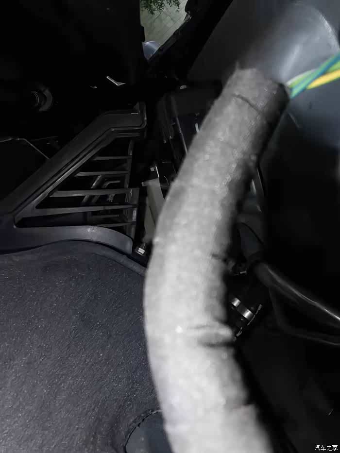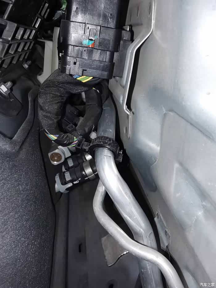 想过把那个可拆卸盖板打开,一直敞着不盖了,下面也没啥电器,可一想,没用,即使打开盖板,多的这四部之一不到的进气口,进的不还是机盖下的待加热气么,算球了,毛用没有,实在热开压缩机。同时照片也再次证明,这车压缩机和蒸发箱链接管是没有隔热棉的,三哥的设计真的惊为天人,用最短的管路距离链接压缩机和蒸发箱,不用隔热棉,这下可算不怕蒸发箱氟回路结冰了。