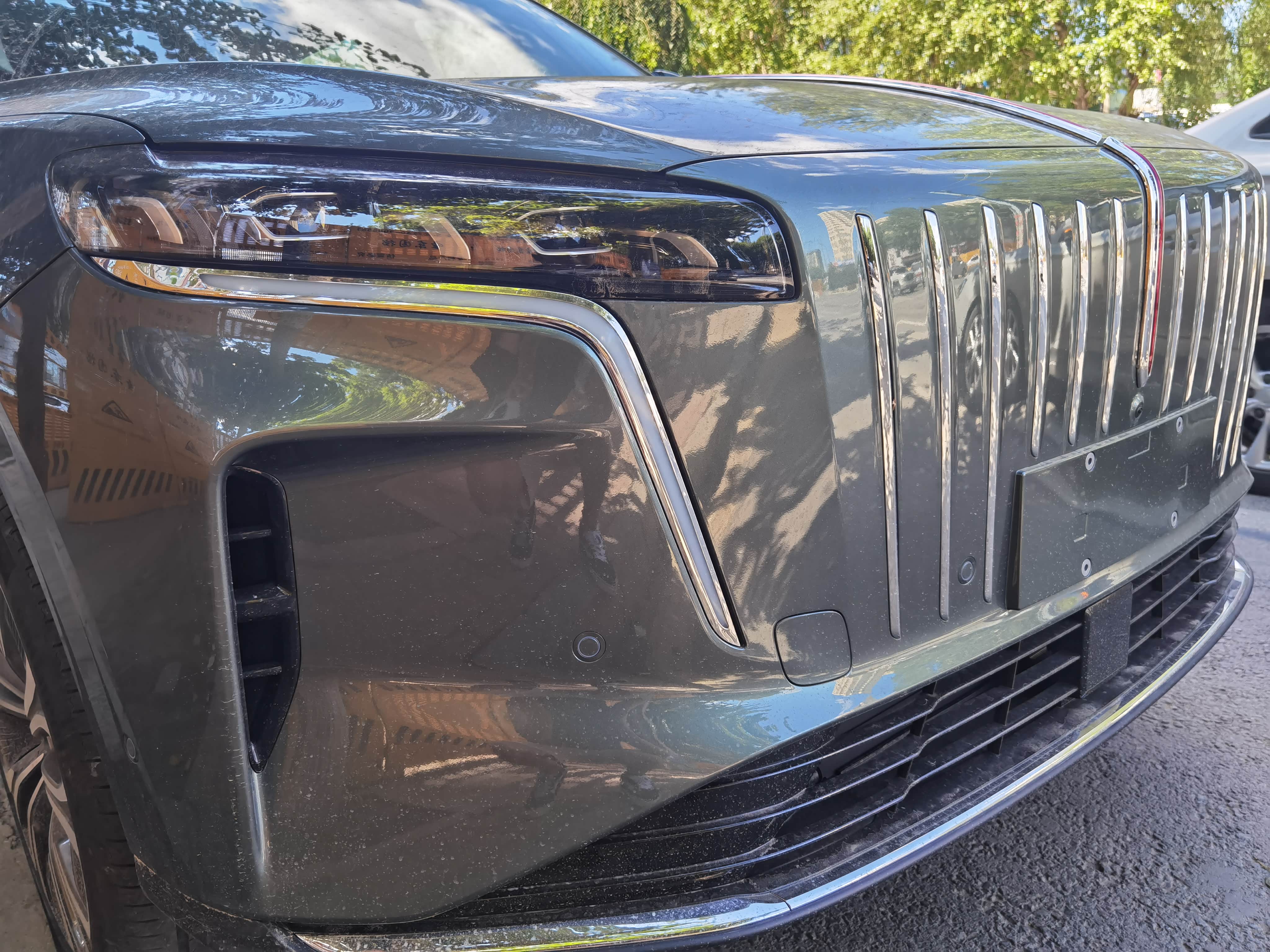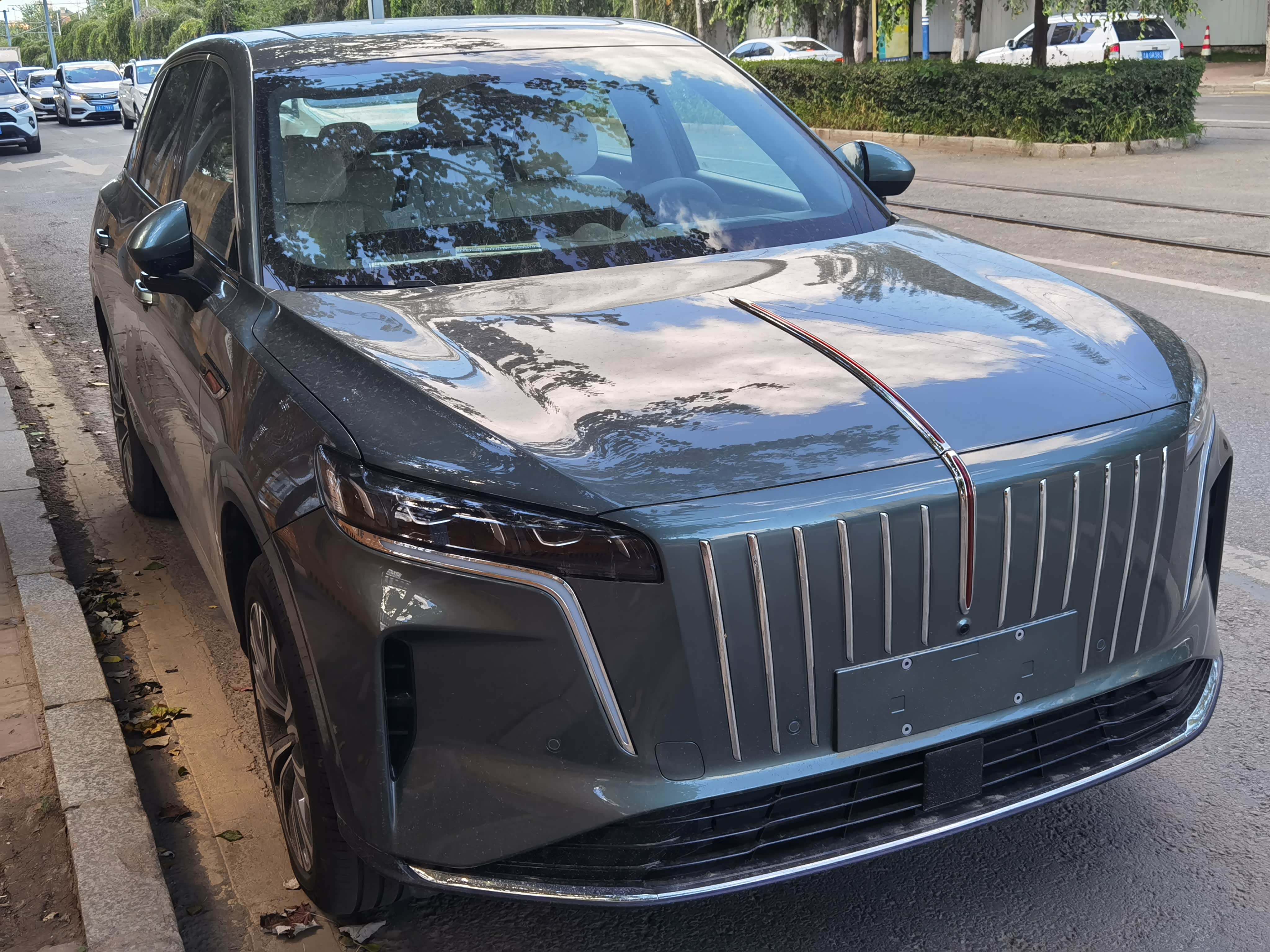 今天抓到一辆野生的红旗HS6 PHEV,首先外观正脸还是很“红旗”的,镀铬装饰条搭配大灯,而且大灯下方还有“龙须”形状的灯,夜晚点亮应该很有辨识度,机盖上方还有红旗标志,应该也是可以点亮,正脸的话中规中矩,没有很夸张的造型设计,保留了红旗原有的味道,可以从第一张照片看出来,这款车采用了无边框后视镜,不仅可以降低风阻,外观也很好看,无框设计更具科技感与简约感,契合当下审美趋势,而且视野也有优势,可调幅度远大于普通后视镜,且无边框遮挡,能提供更宽阔的后方视野,提升驾驶安全性;但是也有缺点,首先就是易损坏,结构特性导致耐用性弱于传统后视镜,并且维修昂贵,雨天视野差,即便开启加热功能,大雨天气下也难保证清晰后视效果。