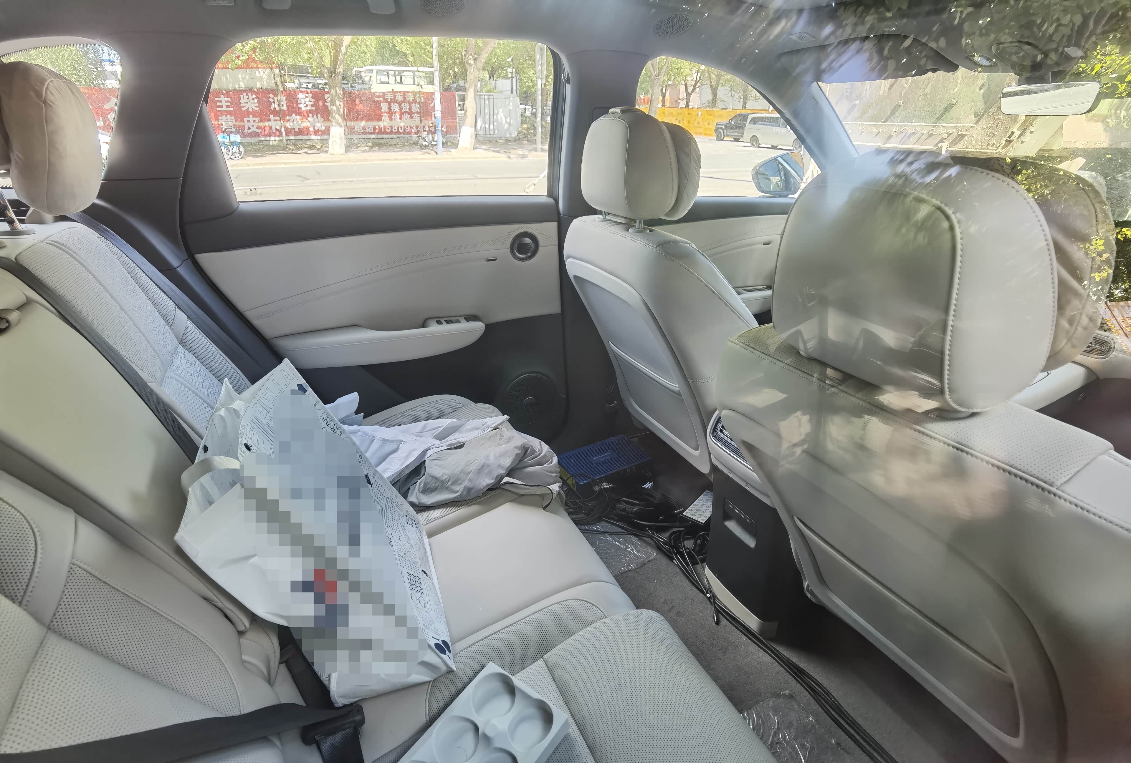 后排空间挺大的,椅背往后倾斜的角度还是挺大的,长途乘坐会很舒服,并且注意看后排中间有个小冰箱,看样子空间也不小,期待这款车的上市了!