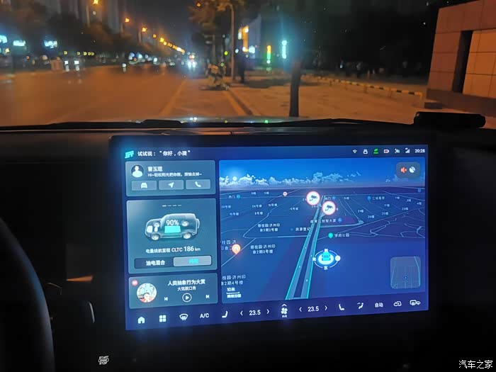 看电影的时候车边马路上行人还是来来往往,虽然知道他们看不到车里,车子的隔音效果也很好,但多少还是有点不自在。大约到了10点半多有点困意,此时已经从车里呆了2小时,车内没觉得闷得慌,看了下电量从8点半的90%到了86%,耗电量约1.9度,设置了屏息把氛围灯关闭后躺下玩手机,听郭德纲相声酝酿睡觉。