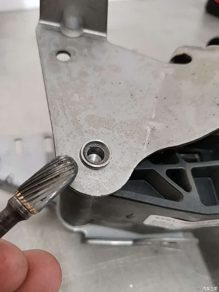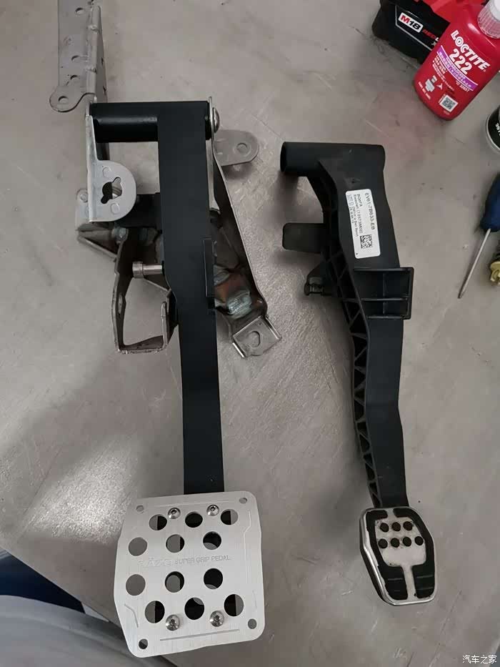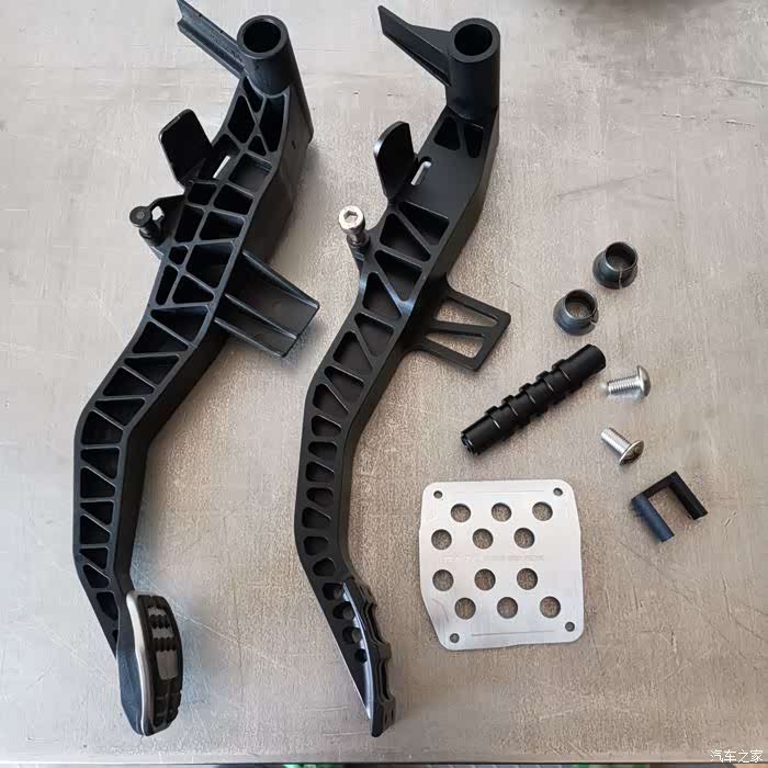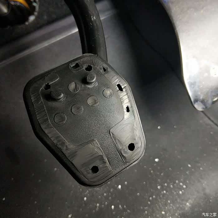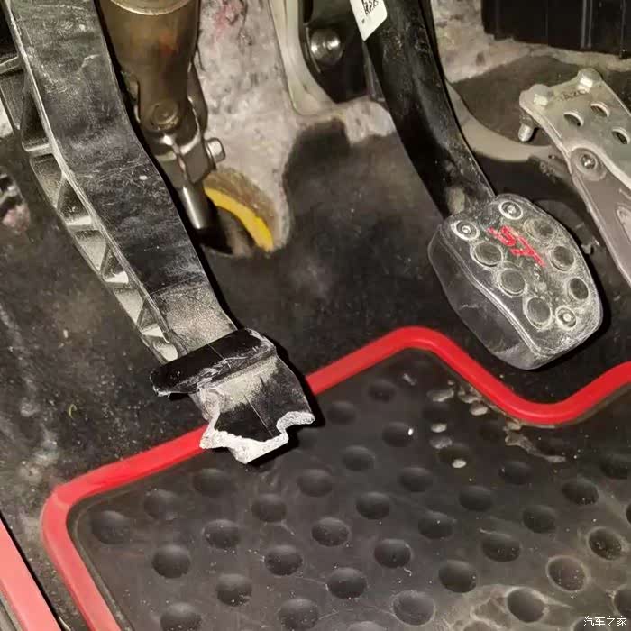 ST原厂离合踏板和RS一样,都是这种很小的接触面,而且有比较高的橡胶颗粒突起,离合本身又比较硬,导致每次踩离合的时候,实际只有脚底板中间很小一点接触面积,如果穿了鞋底比较薄比较软的鞋子,稍微有点硌脚,所以就想到了改造下离合踏板,买了一套Razo的PR123,正准备安装,遇到车友说离合踏板打孔后断裂了,就是下图这样车友的损坏案例,原厂的离合踏板是塑料件,底下这里更薄,大概就是厚度2mm多的薄片,打孔安装踏板,很容易大力踩踏导致断裂拆卸原厂离合踏板,忘记拍照了,都是按照车间手册的步骤来,拆掉电瓶,刹车油壶里的油抽到低于MIN刻度线然后松开离合总泵的连接油管都是卡扣连接的,注意不要蛮力拆卸开主驾驶车...