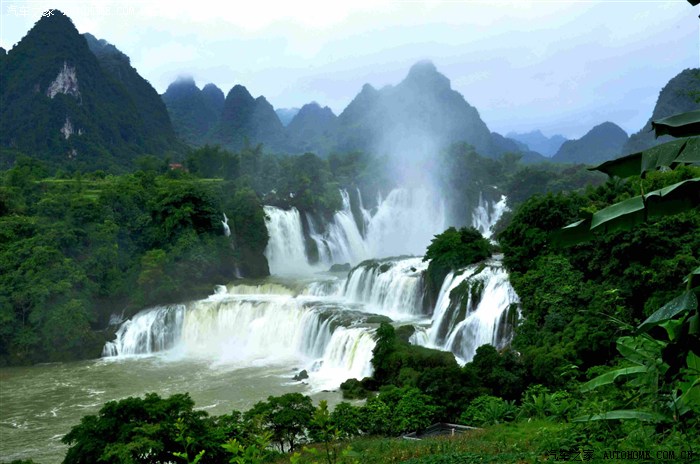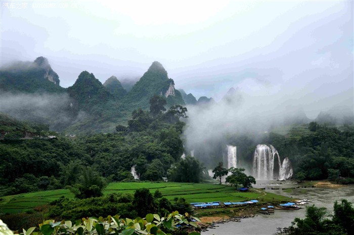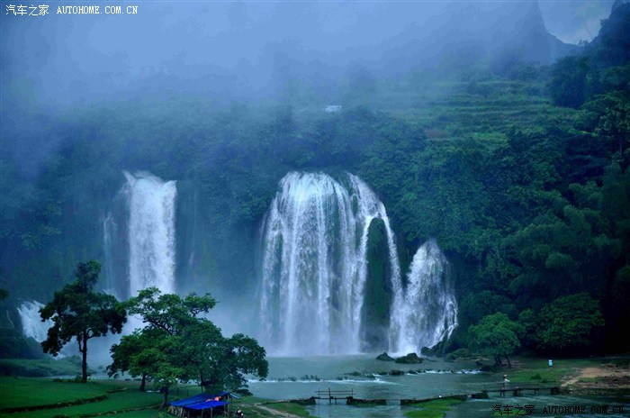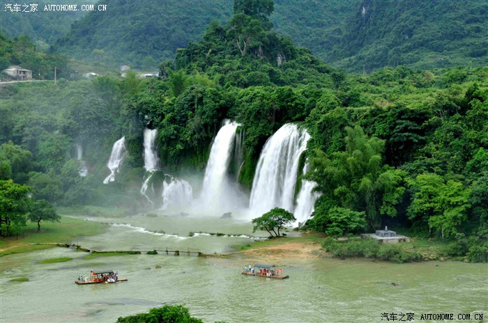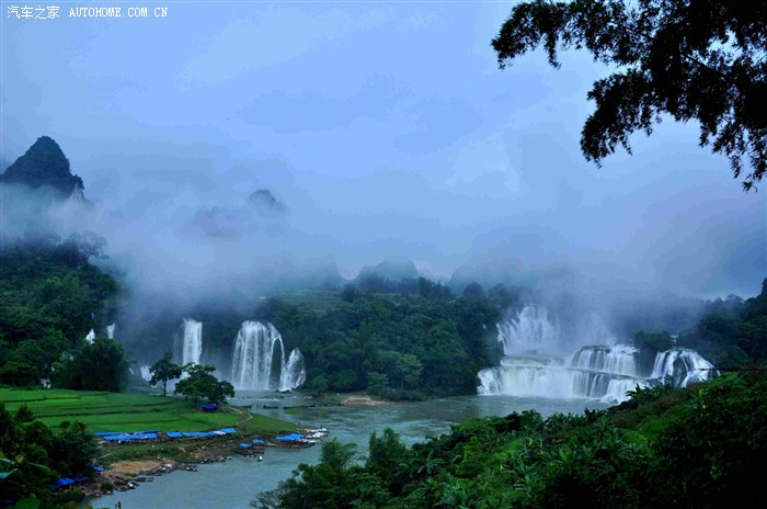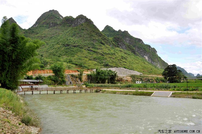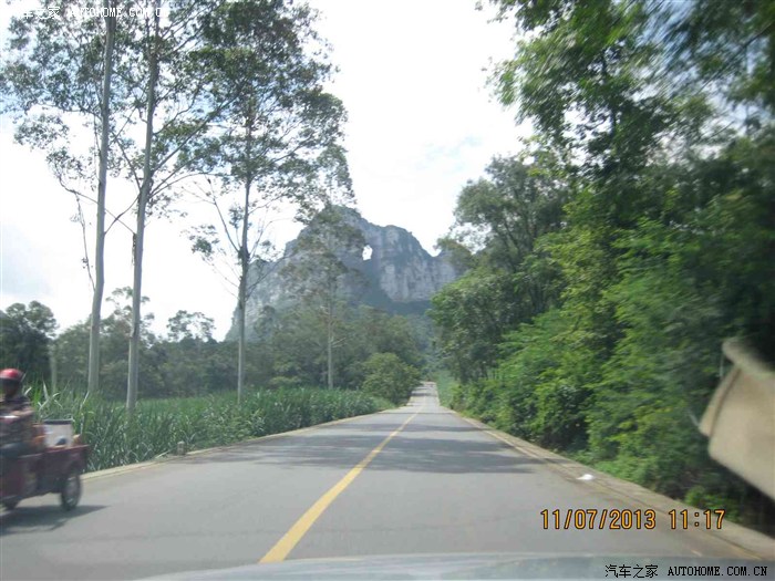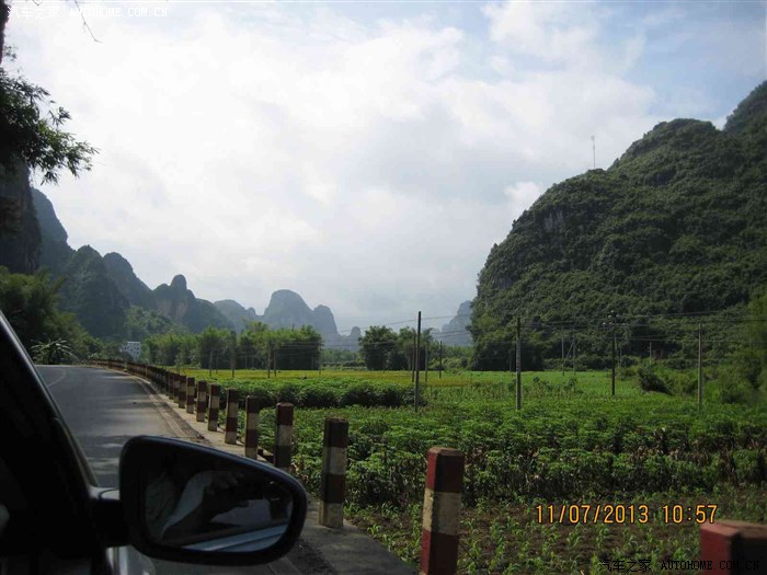 D七天:巴马—百色田阳—德保—靖西—下雷镇—德天跨国大瀑布。早上离开巴马县沿G323经田阳转S213到德宝一路油路,路况良好,但在德宝转S210到靖西路况就较差,是破损了的水泥路面,坑多,车抖,但不影响通过,只是速度受影响。过靖西后S316的路况就好了全程油路到德天大瀑布。到德天最好先不进停车场,先找好宾馆,就将车停在宾馆门前,否则进停车场,就收10元(那怕你马上开出来,我们就是停了20分钟就交10元),过夜每车40元。我们住的临港宾馆,标间80元,我们讲成70元(当地学生还未放假的原因,人还不多)。当天过路费32元,停车费10元,加油费239(97号汽油)。晚饭也是如法炮制,就不在叙述了。