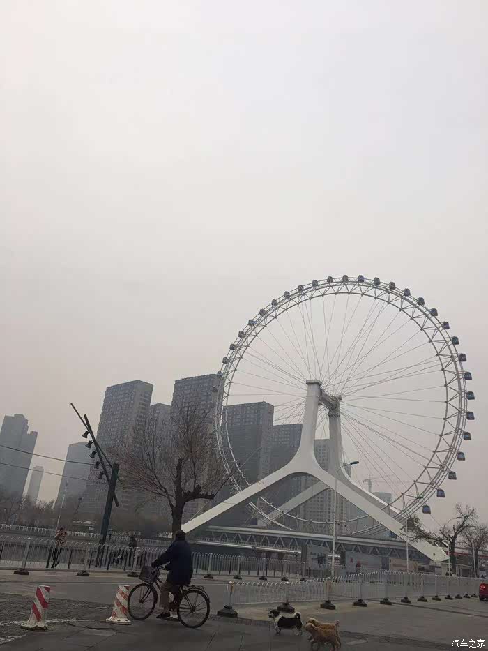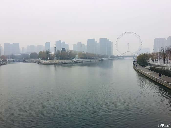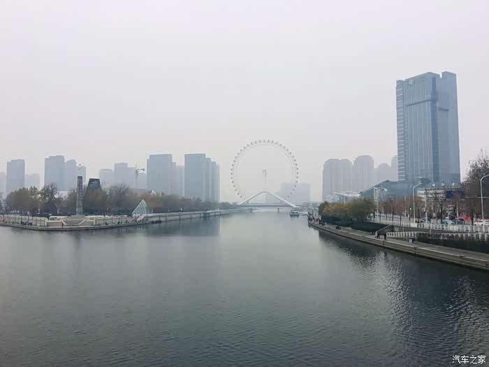 天津之眼是天津标志性建筑,一个巨大的摩天轮,是世界上唯一一个桥上瞰景摩天轮。周六白天有雾,远远的看雾中的天津之眼,像赖床沉睡中一般。