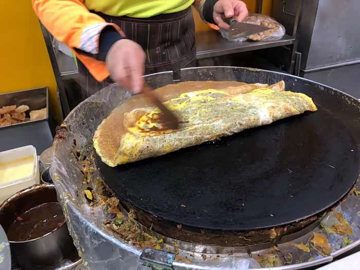 要说天津小吃,第一想到的是煎饼果子和狗不理包子。谁到底是最有名气的呢?煎饼果子先来一套。