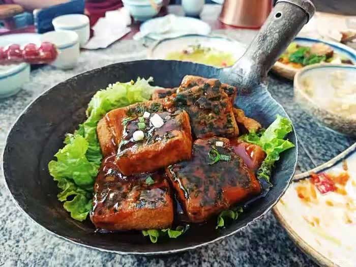 身穿粗布花衣的女服务员,打扮着实透露着一股农家女人的朴实,这家店还真是有意思!