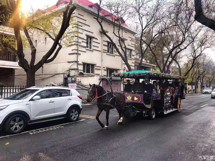 五大道街头,遇到拉着游客的观光马车