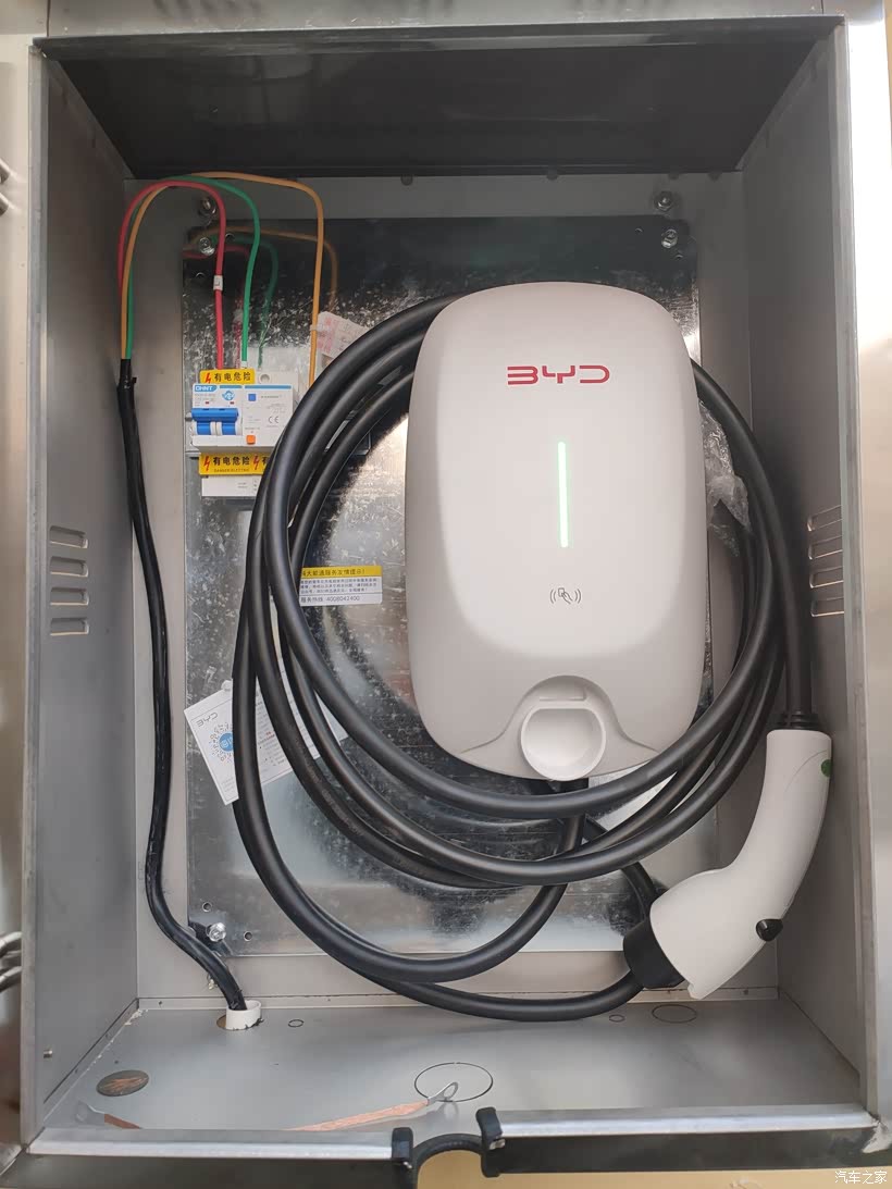 关于充电桩,家里是老小区,没有固定车位,申请不了新能源电表,本来想把充电桩自提回来找人安装到家用表上,APP上约了之后可以给安装,11/1上门安装,提前自己买了个箱子,安装费100,电表下面加个空开50,一共花了150,6*3单股硬线正好用了30米,这一单估计安装公司肯定是赔钱了,充电功率6kw左右DMI版本的26度电池够用了,25%充到满大概3小时。