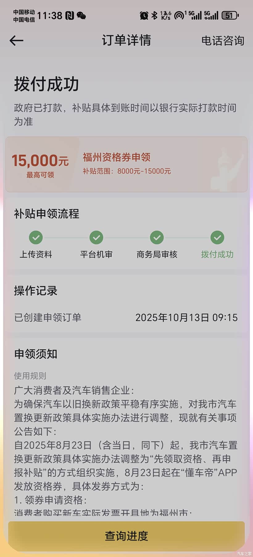 关于补贴,厂补4000 10/20就到账了,省补10/15提交资料,10/19审核通过,11/19到账。