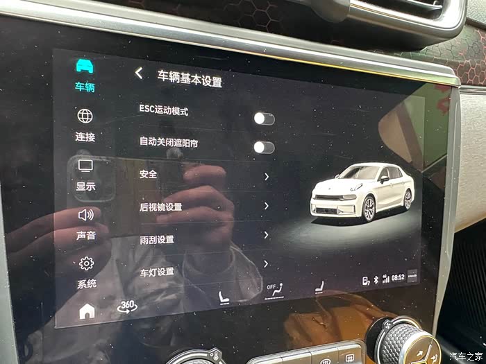 ①启动车辆,在车载电子显示器上点开设置-车辆-车辆基本设置-雨刮设置,打开雨刮器维修位置