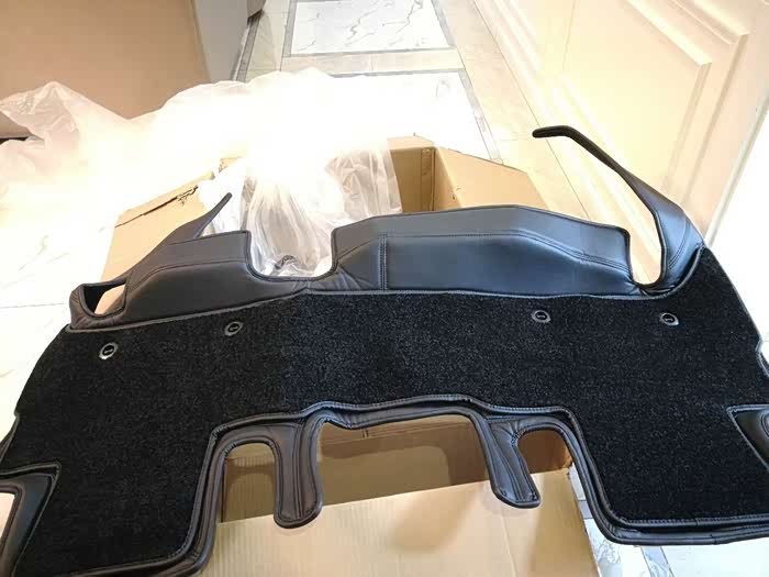 说起脚垫,还有一个故事:我在淘宝上定制的全皮脚垫,三排共计3000多元。我比较了很多家,感觉这家做工、材料都不错,老板也特别诚恳。为了不出错,老板专门让我把上面的几张照片发给她,完了还喊版师到当地4S店复核,说我的车是19款带4区空调的,她们没有数据。就这样一来二去大家沟通了一个星期吧,算是定下来进入制作环节了。结果,后面发生了三件事:1、从交钱到发货等了15天左右,终于发货了,却收到的是奥迪Q7的