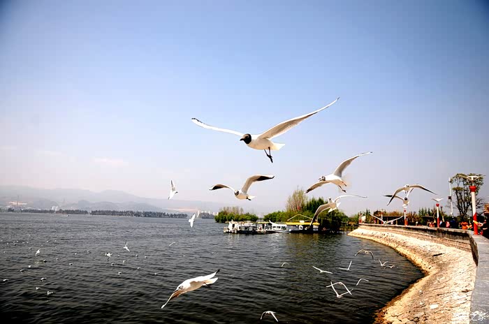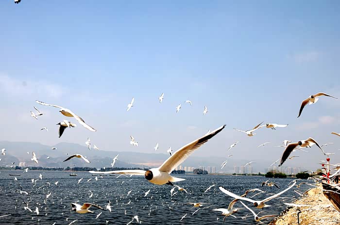 喂食海鸥是昆明市民以及游客们最喜欢的事,这些小家伙一点都不怕人,像滑翔机一样俯冲下来,在你的手中啄食,有的掠过你的身边时,还会盘旋着看看你的手里有没有食物。从它们来到昆明的这30年来,不知道给多少人带来了欢乐、惊喜、希望,留下了难以忘怀的记忆。