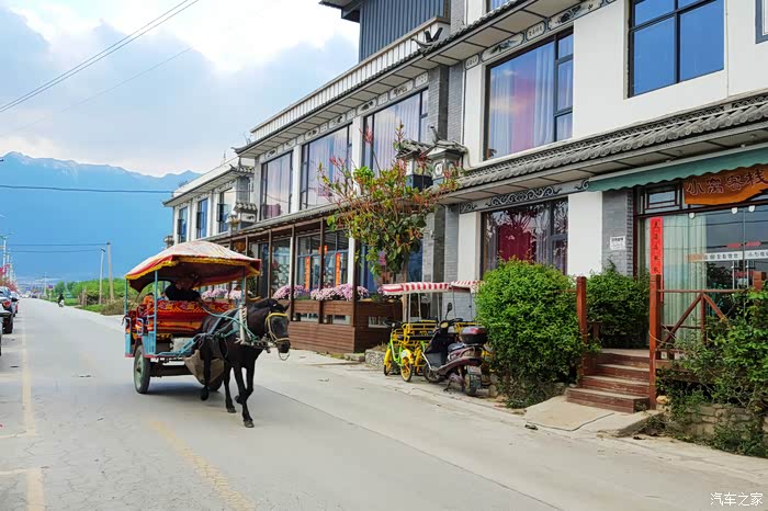 恨春光易逝,开好房间,放了行李,赶紧出门去。还是这熟悉的白族民居,一辆小马车得得而来,此情此景,才敢确认,真的已经回到了大理。我的宝骏和这匹黑马,哪个更靓呢?