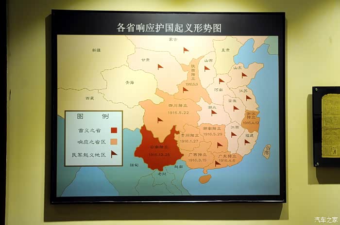 袁世凯卖国称帝的罪行,激起了全国人民的公愤。1914年12月25日云南首先宣布独立,接着,贵州、广西也响应,组成“护国军”进行讨袁战争。经过半年鏖战,取得了护国战争的胜利,粉碎了袁世凯复辟帝制的图谋。现在昆明还有一条“护国路”。