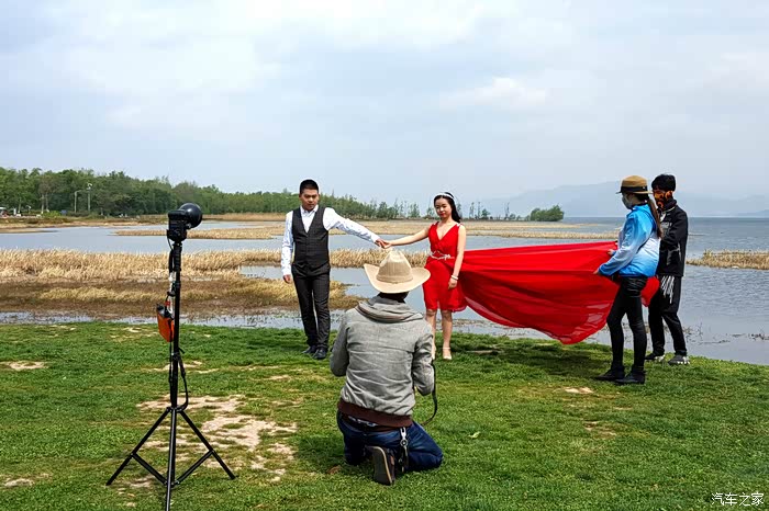 摄影师正在耐心地做着动作指导,看来新人没有什么经验啊!
