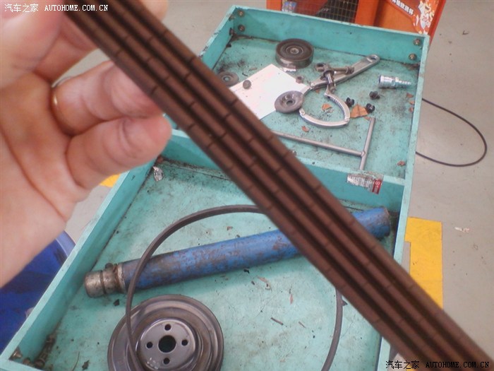 空调皮带状况比较差了,裂纹很多、很大,难怪近1-2年开了空调后感觉车的振动和嗡嗡声很明显。