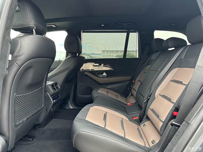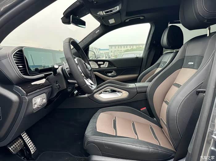 内饰方面,GLS 63 AMG延续了奔驰一贯的豪华风格,采用高档真皮、碳纤维饰板和金属材质,配备双12.3英寸大屏(仪表盘和中控屏),搭载最新的MBUX智能交互系统,支持语音控制、手势操作等功能。座椅提供加热、通风和按摩功能,第二排和第三排空间宽敞,适合家庭或商务出行。