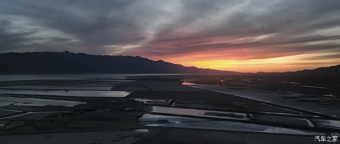 在U型公路到大柴旦的路上还有一处隐藏航拍机位,就在距离U型公路大约1公里的距离,用无人机可以拍到大地“血脉”,其实就是一大片红色的干涸河床,在夕阳余晖下会显得更加清晰,就像大地的脉络那样神奇。