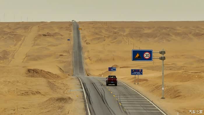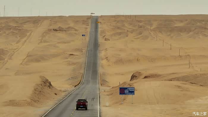从U型道的底部看向前方,就是一条直入云霄的“天路”,这种神奇的公路只能出现在起伏的沙漠地形中,路边插满了“禁止停车”的标识,也是为了游客的安全,这里行驶的大货车速度极快,所以,需要拍照的朋友一定记得先驶离U型公路,徒步返回才是最安全,或者选择全程航拍。