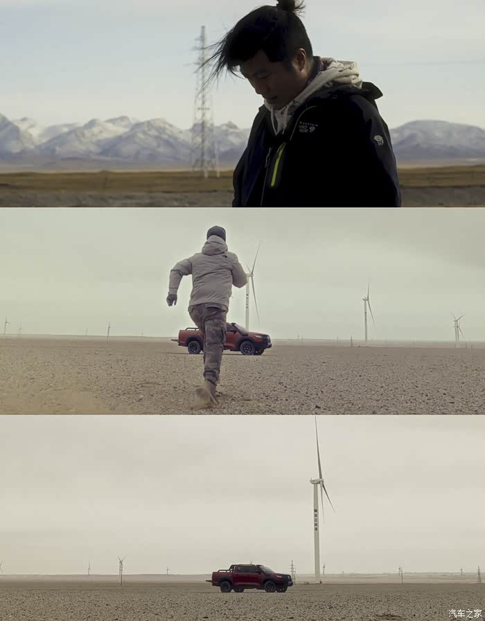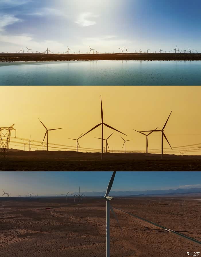 再往深处就是一望无际的沙漠,如今的大柴旦附近矗立了相当量级的风力发电站,如同一个个巨人。站在这些“巨人”之中,可以体验一把从未有过的巨物恐惧症,即使是车身够高、霸气十足的长城炮,在它们面前也像一个玩具。