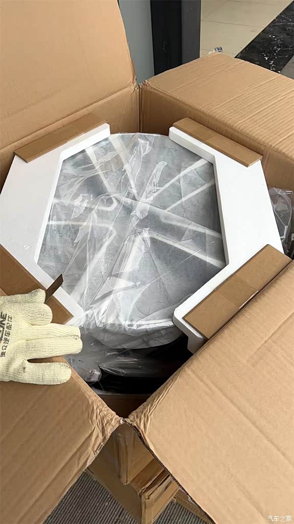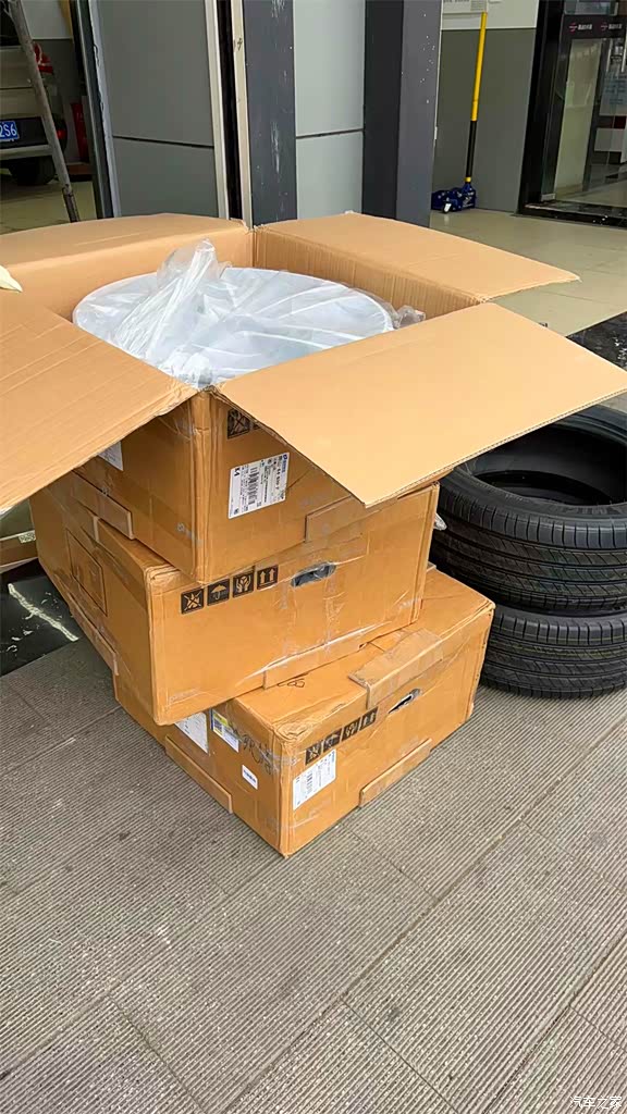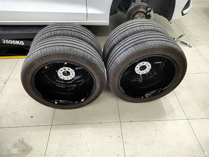 经过一番选型、定数据、出图确认,最终确定了维持原车大小的18英寸锻造轮毂,继续沿用原车的米其林浩悦4轮胎。又一番漫长的等待(春节及疫情导致工厂出货周期加长),终于迎来了他和它换脚丫子的这一天。马总监迫不及待地去德邦站点自取,并先开到施工店面准备手术。