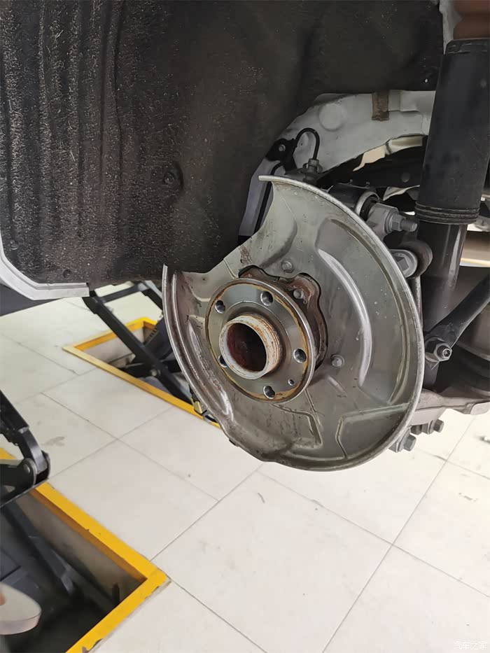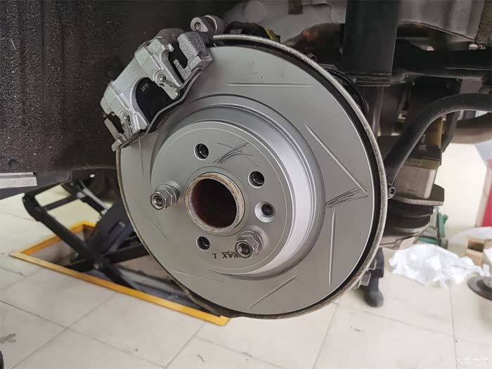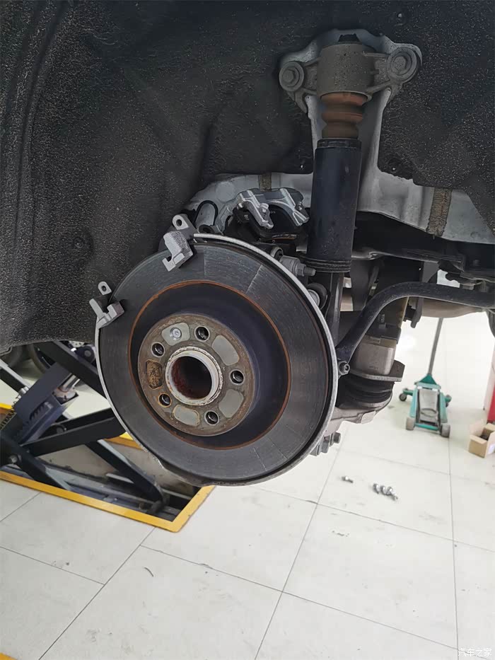 很容易就换上了新盘,刹车片继续使用原车的,等4w左右磨到更换,换块Dixcel的M片。
